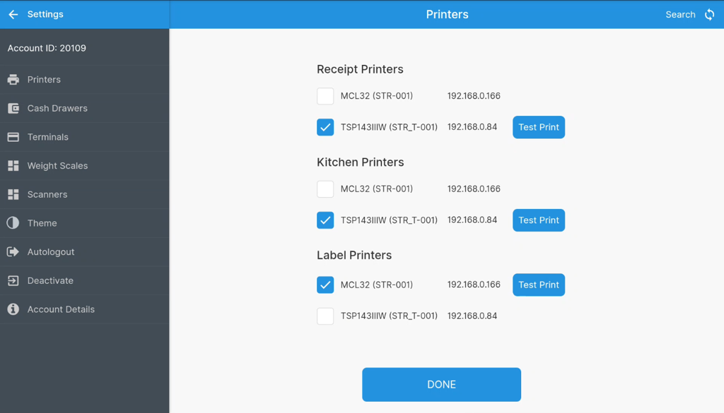 On the POS, go to Settings → Printers