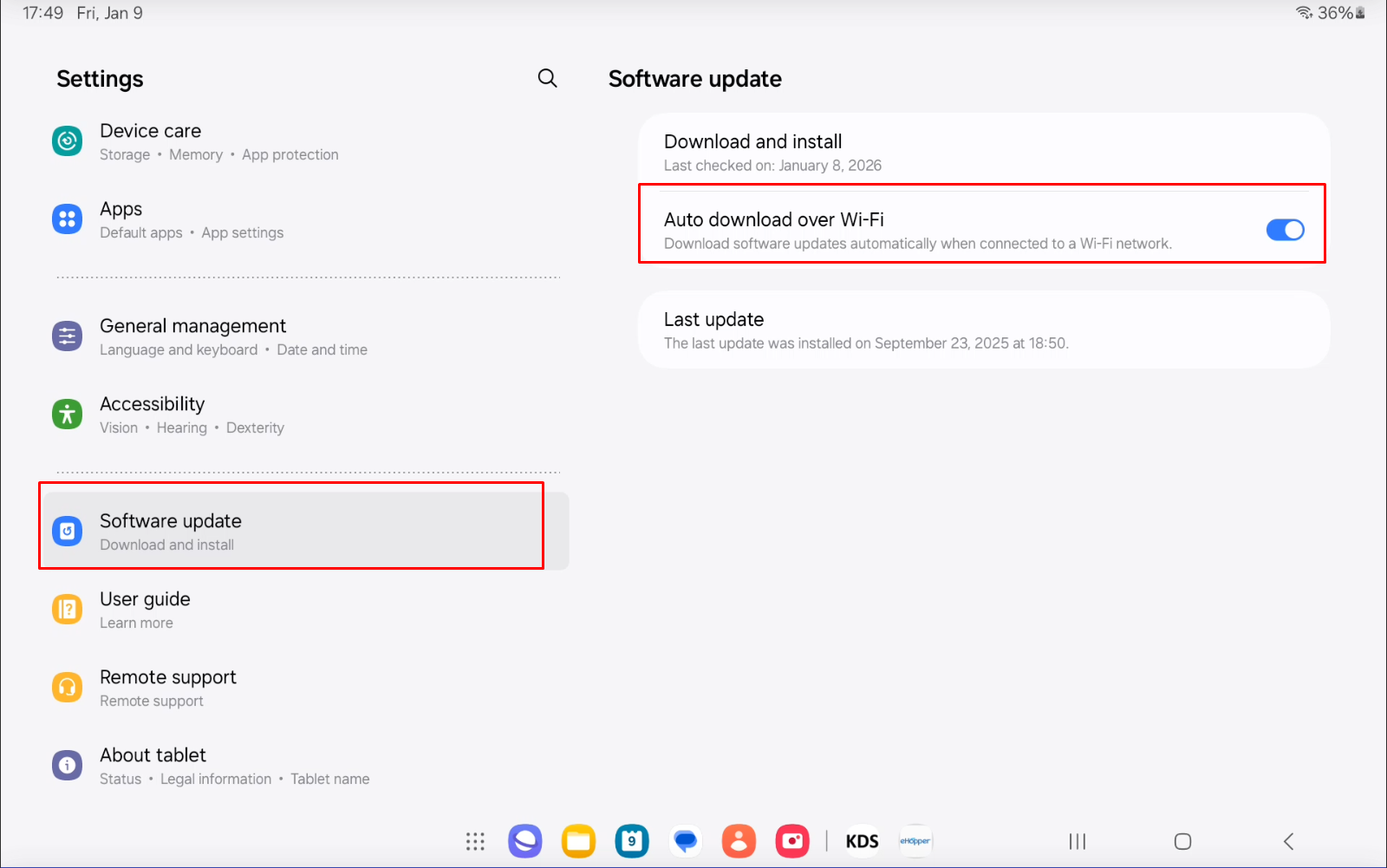 Some Android tablets allow auto updates to be turned off directly in system settings.