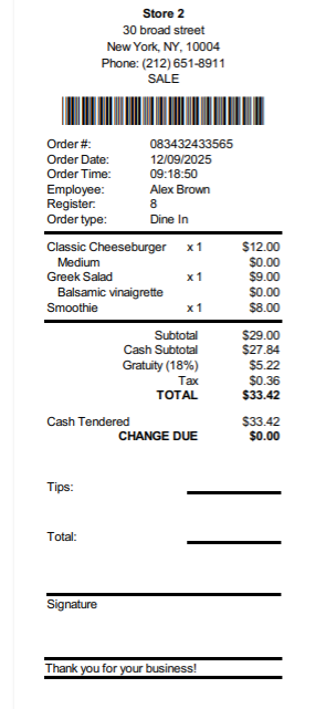 Example: 18% Gratuity for 6+ Guests Option B: Minimum Amount