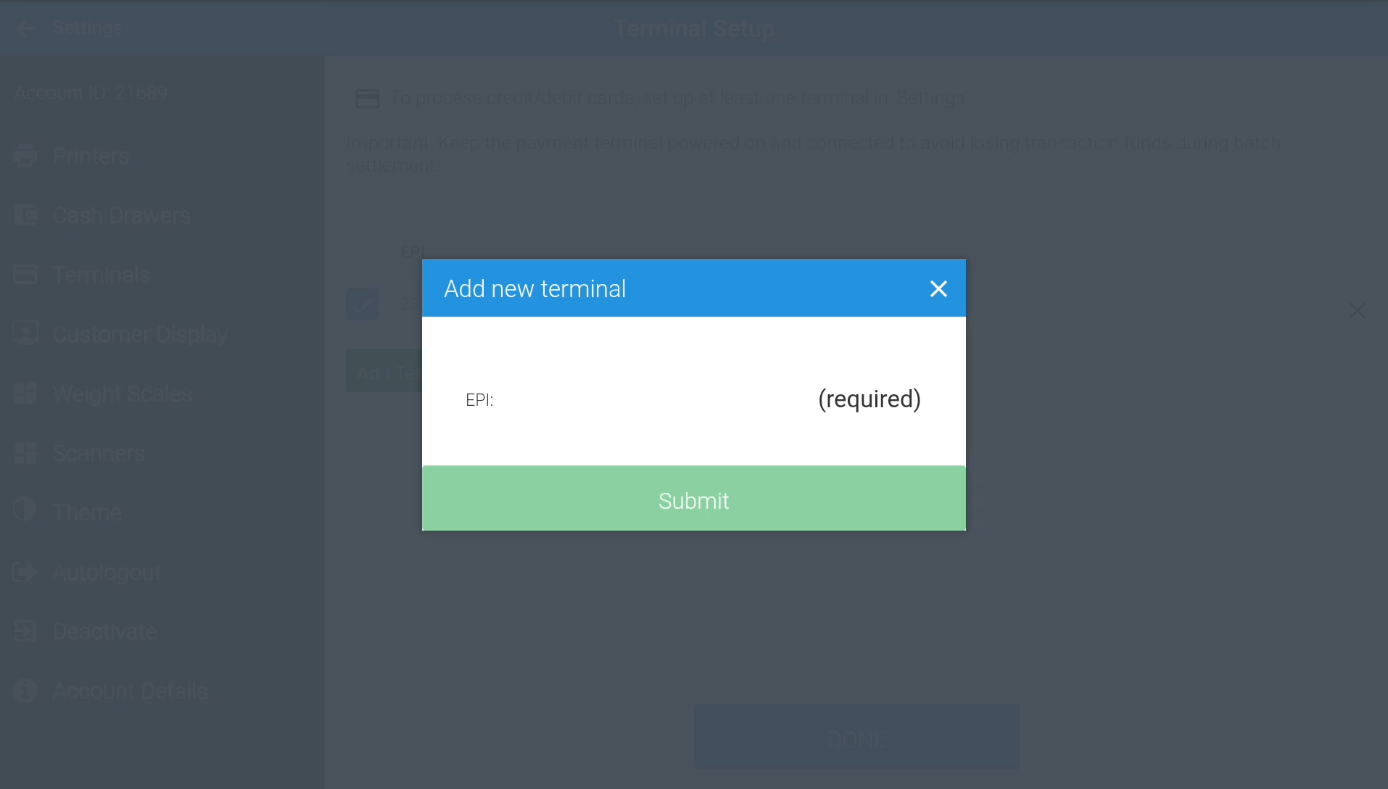6. Click Done on the Terminal Setup screen.