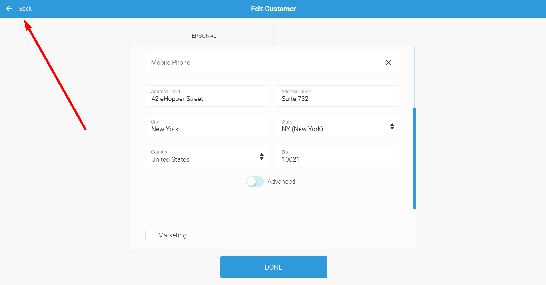 - To edit a customer's information, select Edit on the top left of the Customer Details screen.